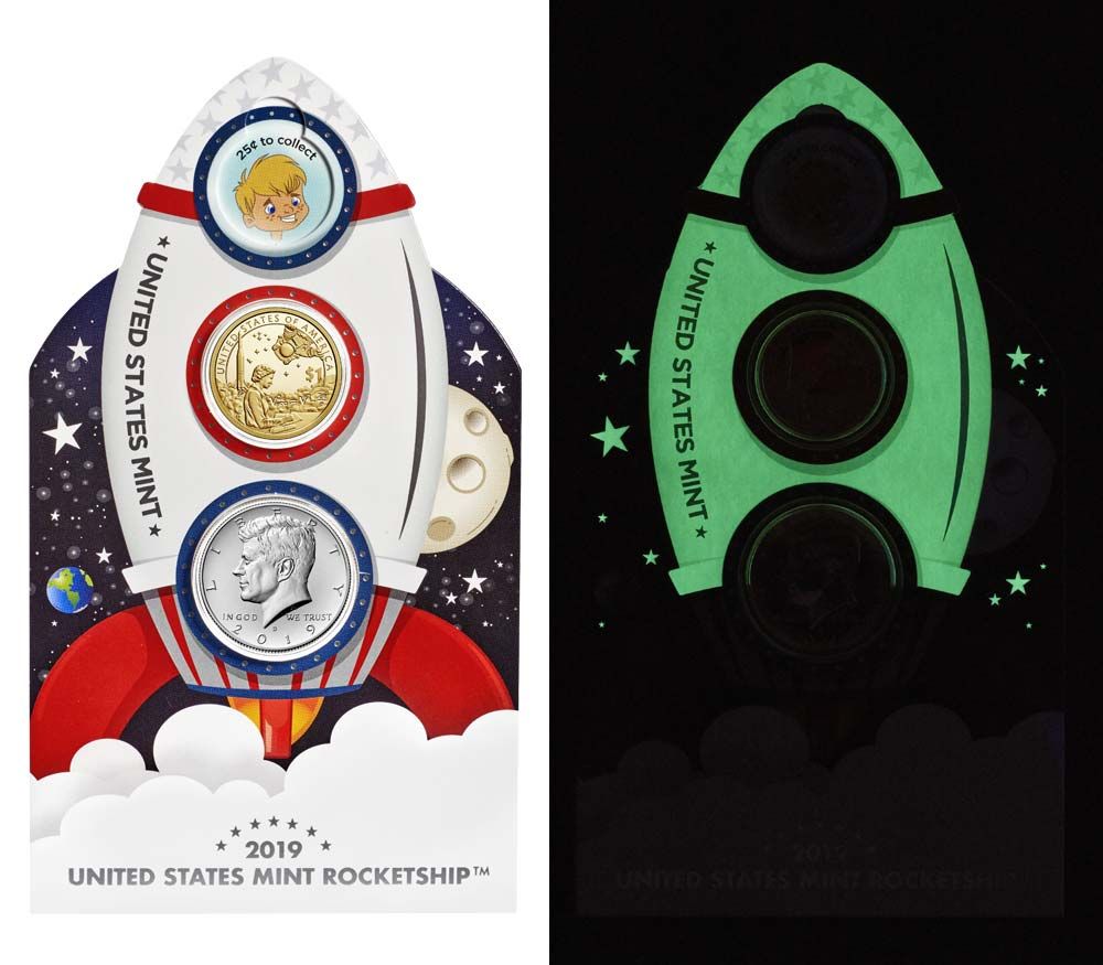 Introduce your son, daughter, niece, nephew, or other special child in your life to the world of coin collecting with our cool new United States Mint Rocketship. It comes with two special coins included—a 2019 Kennedy Half Dollar with an uncirculated finish and a Native American $1 Coin honoring American Indians in the Space Program with a proof finish.