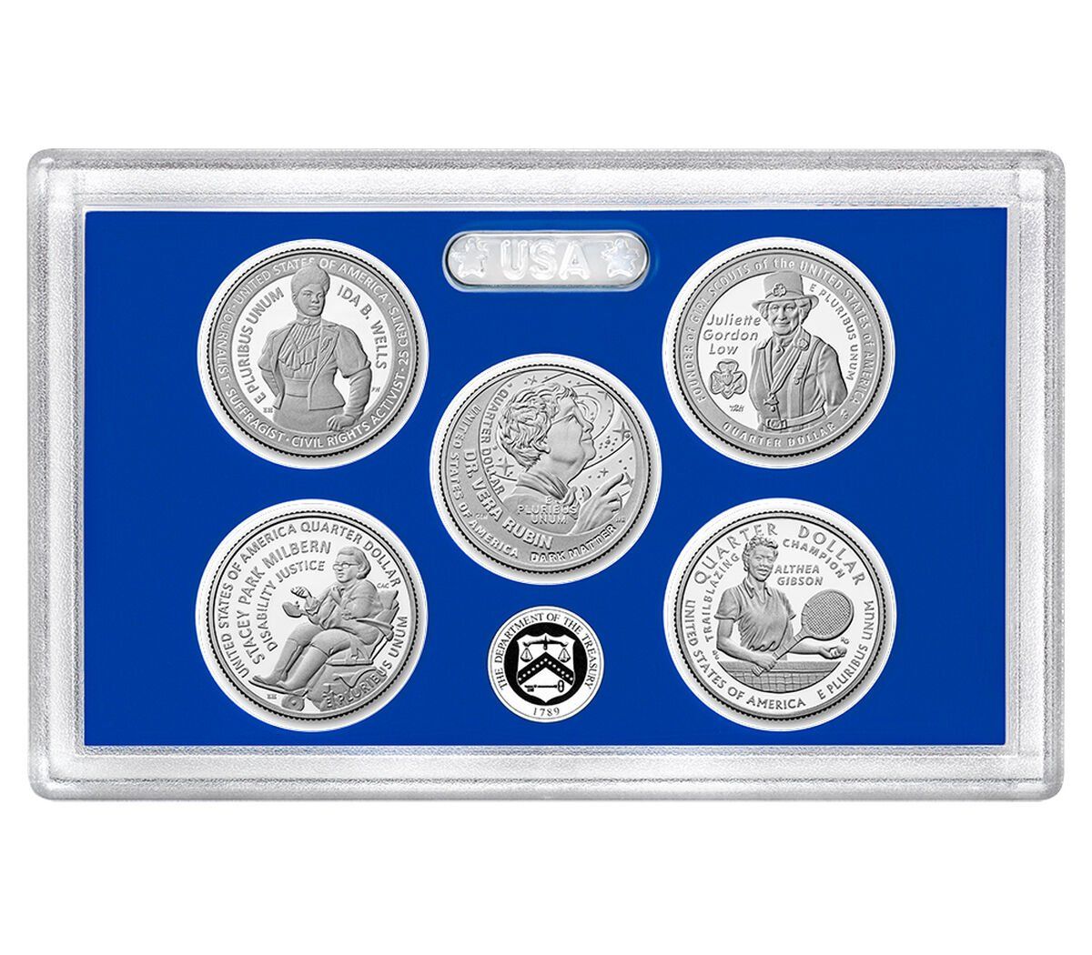 The 2025 American Women Quarters Proof Set™ features all five 2025 American Women Quarters. They are packaged in a protective lens to showcase and maintain their distinct proof finish.