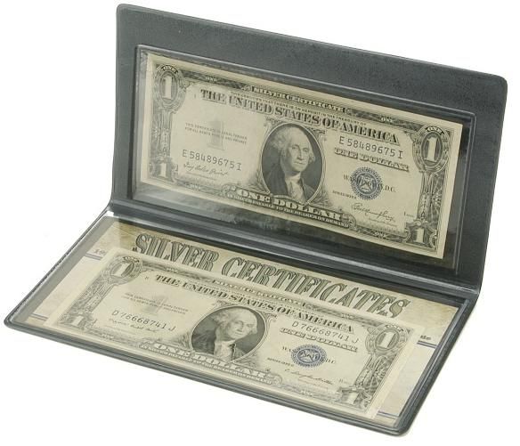 The Series of 1935 $1 Silver Certificates was America's last bank note without the motto 'In God We Trust.' When the design change was made with the addition of the motto on the back, the series date was changed to the Series of 1957. However, a small number of Series of 1935 notes were made in 1961 with the motto.According to the dating system for bank notes, these should have been the Series of 1957. It is not clear whether this was an error on the U.S. Treasury's part but what is clear is that the Series of 1935 $1 Silver Certificate with the motto is exceptionally scarce. These bank notes are fascinating pieces of history, which disappeared from circulation decades ago.Silver Certificate Set Features:(2) $1 Silver Certificates1935 Silver Certificate with 'No Motto'1935 Silver Certificate with 'Motto'Certificates measure approx. 6-1/8' x 2-5/8'