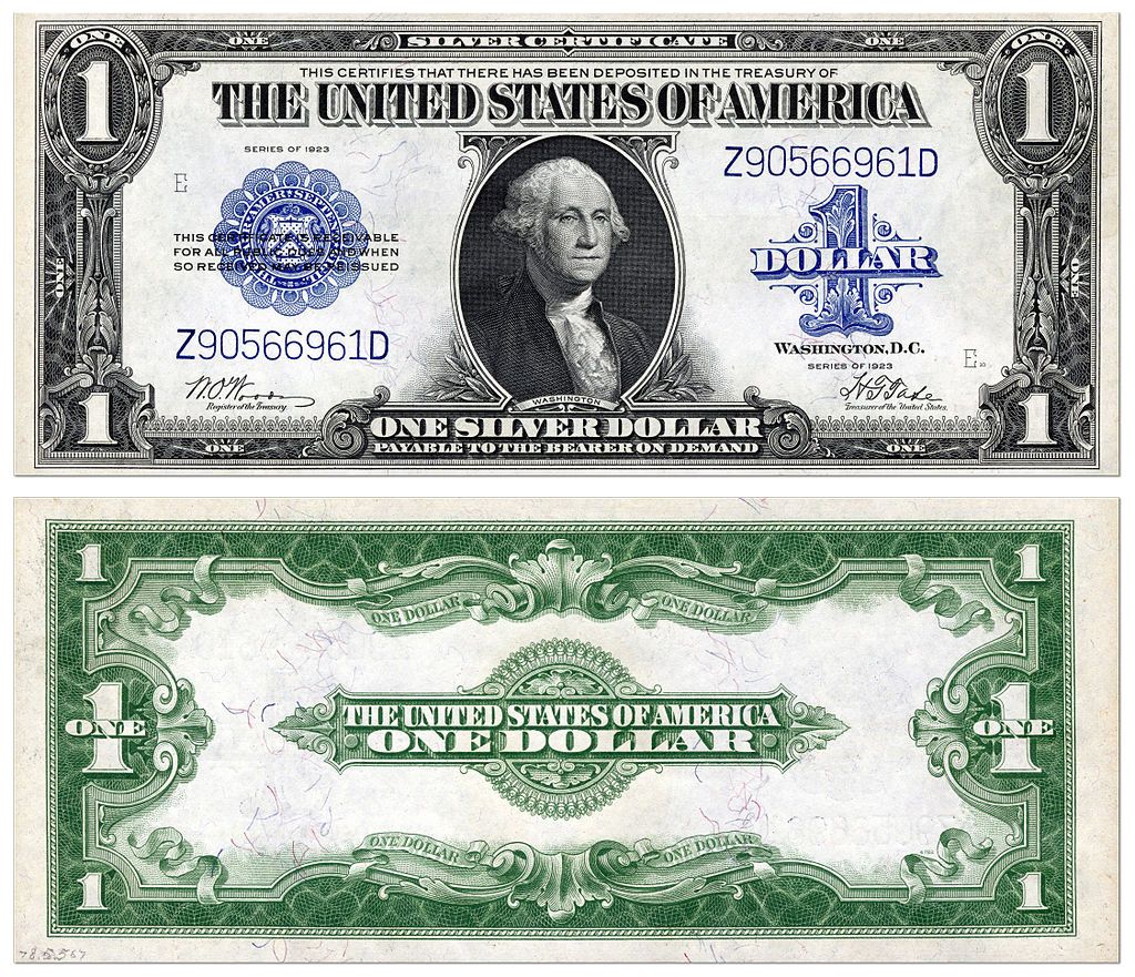 The Series of 1923 $1 Silver Certificates was America's last large-size bank note, while the Series of 1928 and Series of 1934 $1 Silver Certificates were America's first small-size bank notes. These bank notes have not been seen in circulation for over 70 years.