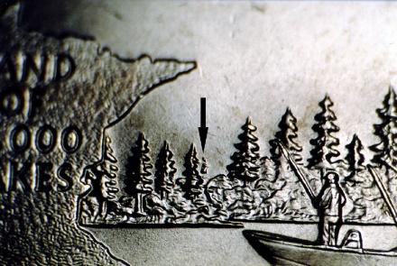 There are actually many different versions of the 2005 Minnesota quarter doubled die. There are at least 50 different types of errors, varieties, and other unusual anomalies involving the 2005 Minnesota quarters from the Philadelphia and Denver mints. The value of a Minnesota state quarter error varies, based on the strength and degree of doubling of the extra tree: