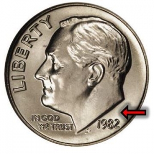 Obviously, the 1982 No Mint Mark Roosevelt dime, has no mint mark.